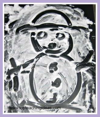 Just squirt enough shaving foam onto the table and allow the kids to draw shapes and pictures in the foam. If you want to preserve their work you could take a picture of it before the next child has a go. I used the photos to put in their Learning Journals.